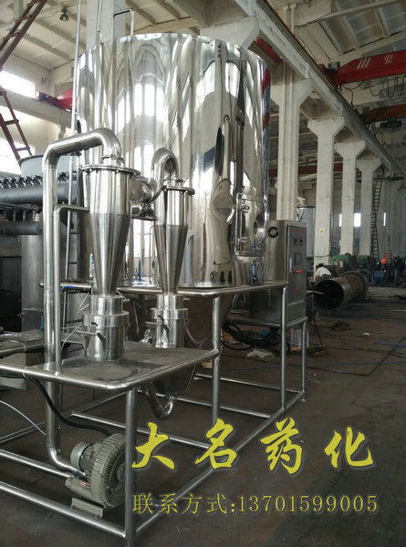 5、生产过程简化,操作控制方便。喷雾干燥通常用于固含量60%以下的溶液,干燥后,不需要再进行粉碎和筛选,减少了生产工序,简化了生产工艺。对于产品的粒径、松密度、水份,在一定范围内,可改变操作条件进行调整,控制、管理都很方便;