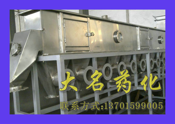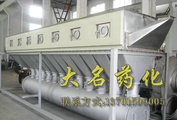 洁净的热风经阀板分配进入床体内,从加料器进入的湿物料被热风形成沸腾状态。由于热风与物料广泛接触,增强了传热传质的过程,因此在较短时间内就可干燥。如用连续型,物料从床体的一头进入,经过几十秒至几分钟沸腾干燥,自动从床体另一头流出。本设备一般进行负压操作。