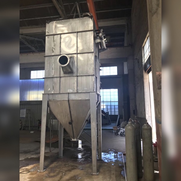 含尘气体从进气口进入下箱体后,部分沉降,轻微粉尘浮动时被滤袋阻留,净化空气头过滤袋,经文氏管进入上箱体,从出气口排出。积附在滤袋外壁的粉尘不断增加,当阻力在限定(一般为80-120毫米水柱)范围内,就要清除积附在滤袋外壁的粉尘,清灰是由控制仪定期顺序触发各控制阀,开启脉冲阀,是气包内的压缩空气通过喷吹管孔使布袋在一瞬间急剧膨胀,并伴随这气流的反向作用,被抖落的粉尘落入灰门经排灰阀排出机体。